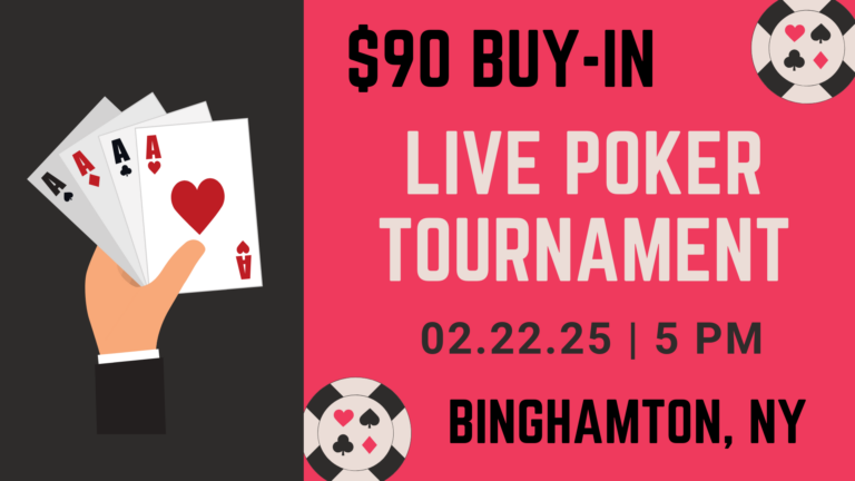 Our largest buy-in tournament ever! A $250 buy-in NLHE Tournament that includes a $10,000 guaranteed prize pool. The tournament starts at noon. Dinner is served at 3:15. Late registration & rebuys until 4 PM. 60,000 chip starting stack. Blinds start at 100/200 and increase every 25 minutes. Championship Belt awarded to the winner!!!