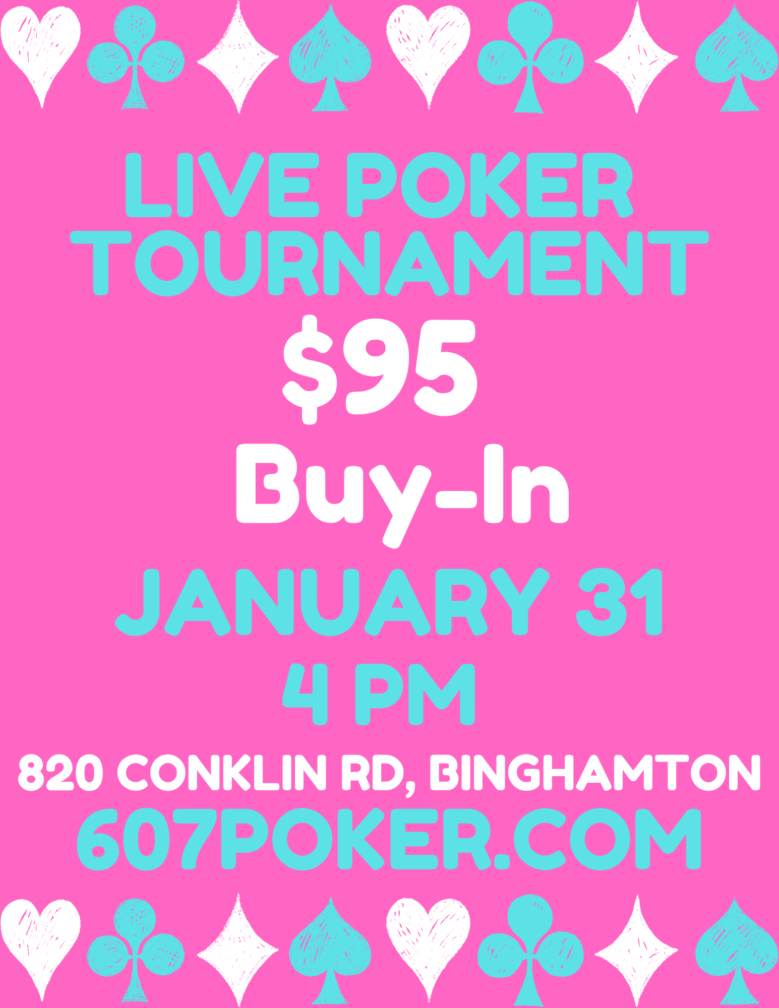 Doors open at 3:30, cards fly at 4 and late registration closes at 6.